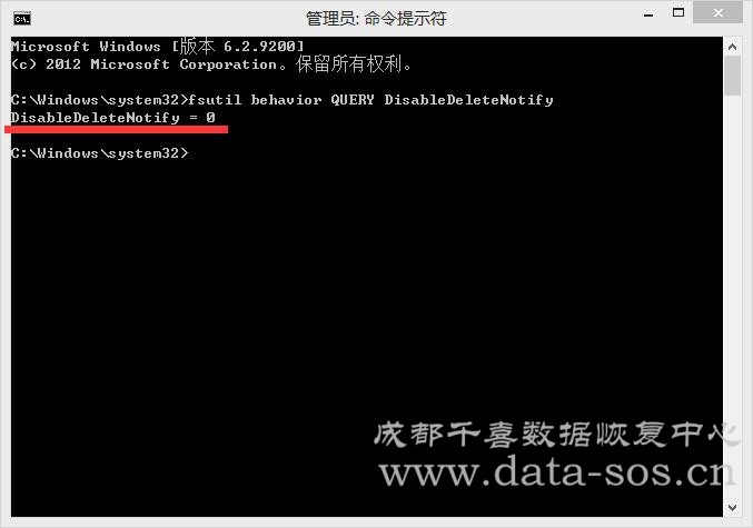 如果顯示“DisableDeleteNotify = 0”,那就表示當(dāng)前SSD支持Trim指令,如果=1,就是不支持。
