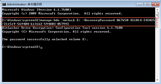 在擁有密鑰的情況下,您可以使用管理員命令來為驅(qū)動器解鎖。具體如下: