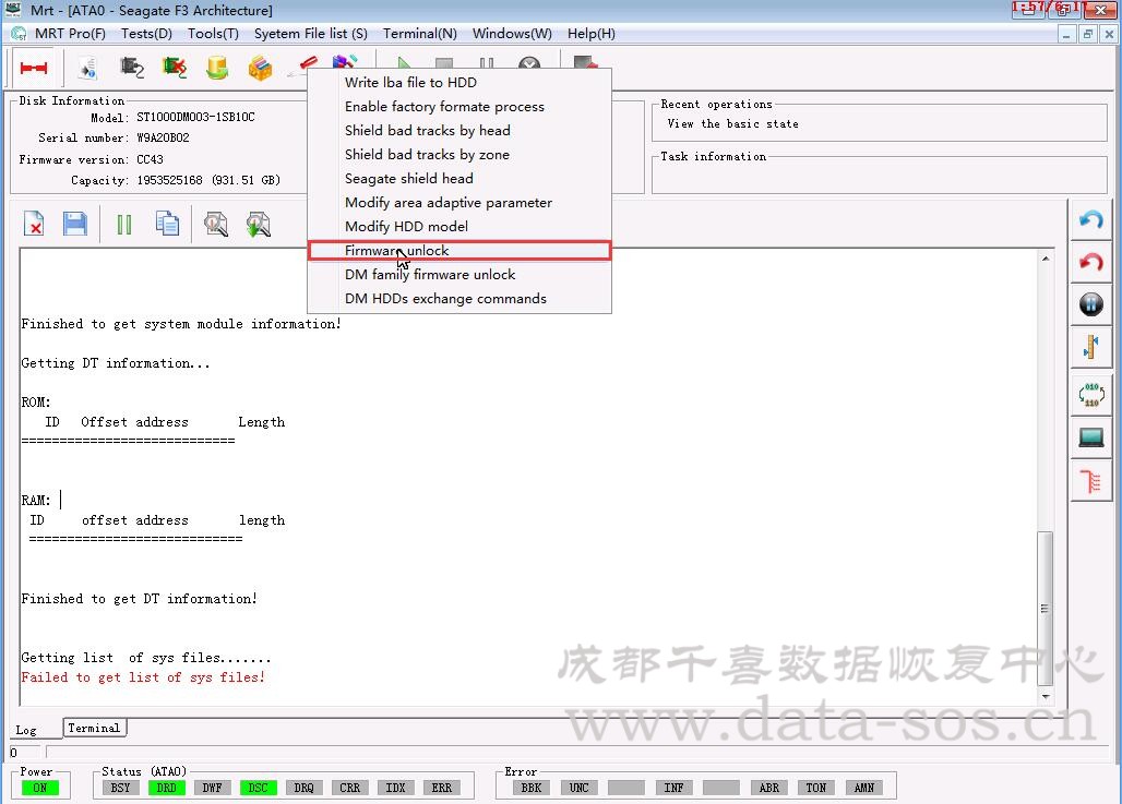 轉(zhuǎn)載請(qǐng)注明:成都千喜數(shù)據(jù)恢復(fù)中心 » 使用MRT解鎖希捷DM系列硬盤三角板固件鎖教程