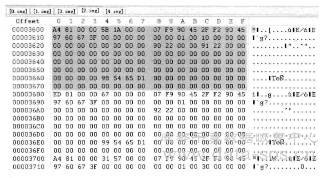在RAID-5的結構分析中,往往需要利用校驗塊分析條帶大小、循環(huán)方向等參數,那 么在成員盤中找到校驗塊就很重要,熟悉了文件系統(tǒng)中各種數據結構的特征,就可以用對比排除法找到校驗塊。