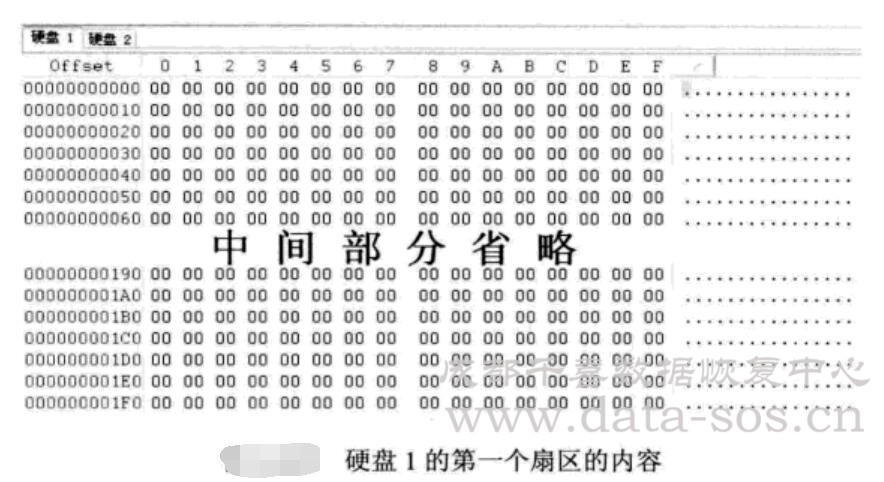 從上圖可以看到硬盤1的第一個扇區(qū)內(nèi)全部為0。 硬盤2的第一個扇區(qū)的內(nèi)容如下圖所示。