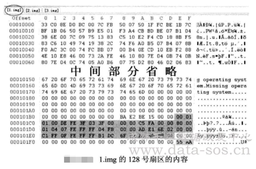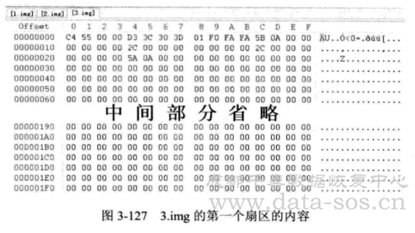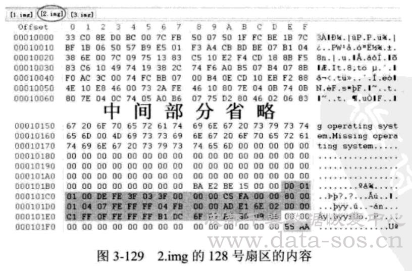 3.img的128號扇區(qū)內(nèi)容全部為0,這也就能夠解釋為什么l.img的128號扇K和2.img 的128號扇區(qū)的內(nèi)容完全一樣了。