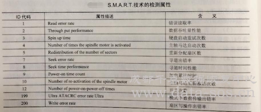 由丁.ATA標準不斷更新,不同型號產(chǎn)品也會有所不同。其中S.M.A.R.T.技術(shù)規(guī)定的幾個主要檢測屬性如下表所示。