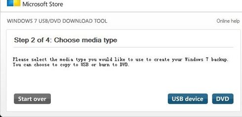 改用官方的Windows 7鏡像后,則會進(jìn)入第二步,在這里我們可以選擇制作的安裝盤的方式,我們可以選擇U盤和DVD光盤兩種介質(zhì),在這里我們選擇USB devcie。