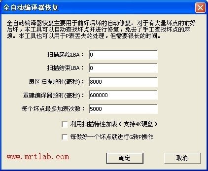 所有參數(shù)都保持默認就可以了,注意如果是使用4K技術(shù)的硬盤,要把支持4K硬盤那個選項勾上。點擊確定后,程序會全自動開始處理,根據(jù)譯碼器的錯亂程度,花費的時間也不同。一般2個小時左右,譯碼器就能完全修復(fù),此時,前好后壞也就徹底解決了。