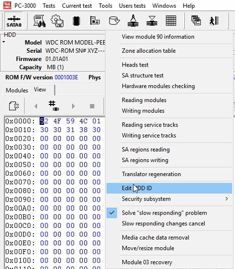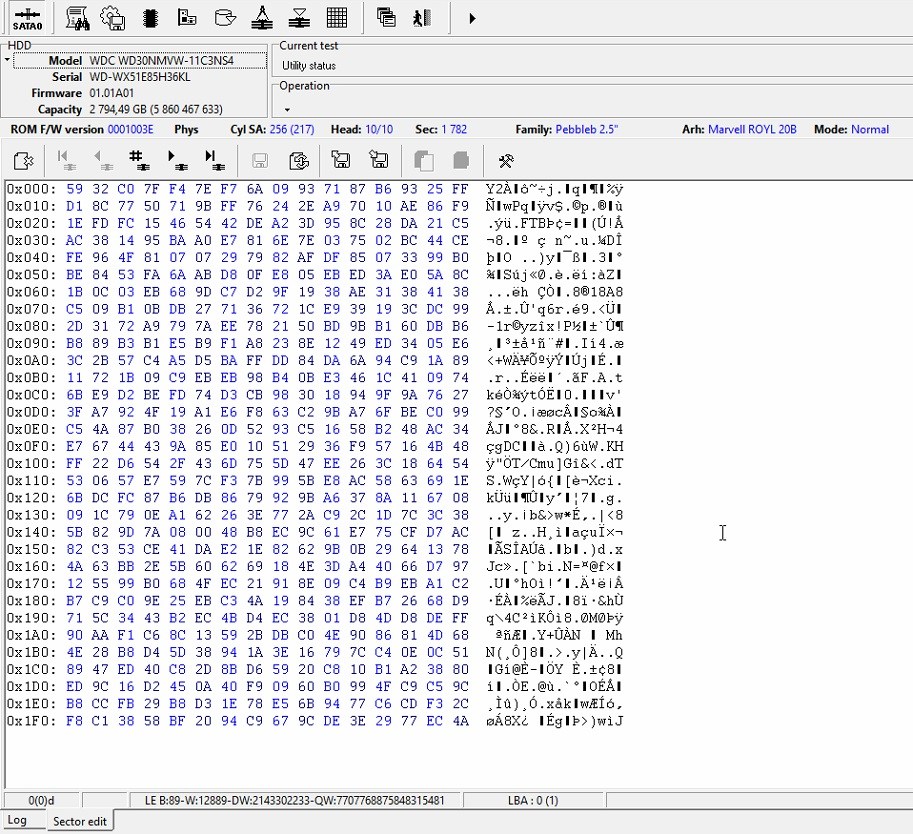 In Marvell utility we select the Edit HDD ID again and enable the SED back, and restart the drive. It starts without SA access in PC-3000, but the data looks decrypted: