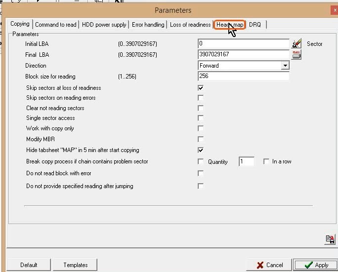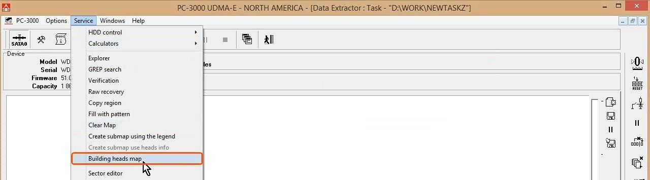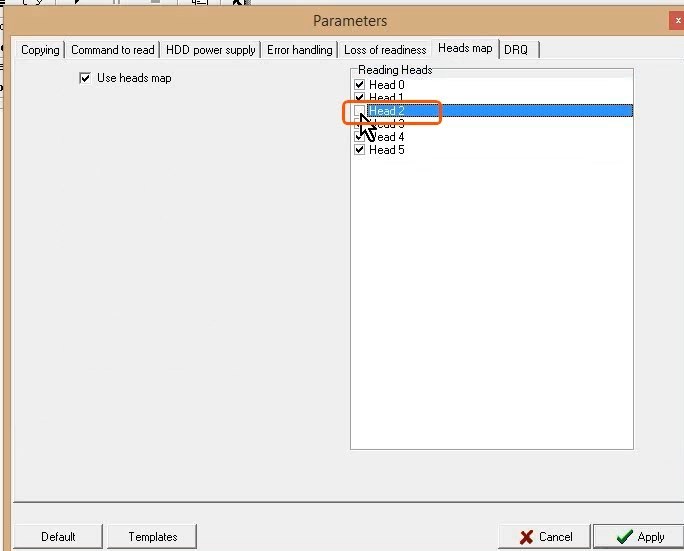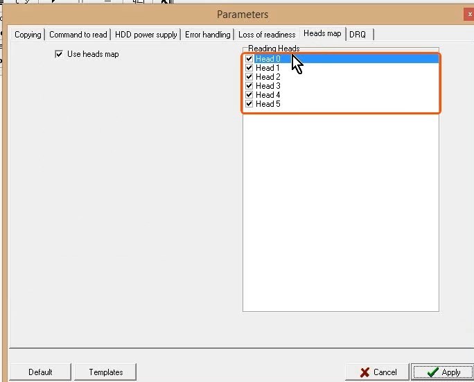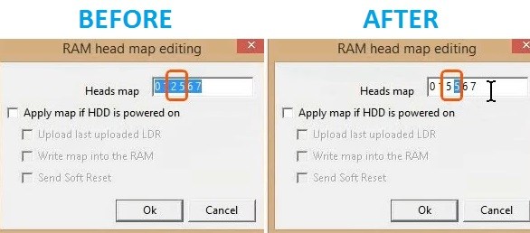 Pay special attention to the fact that heads here have logical numbers(0,1,2,3,4,5) but in the WD utility we worked with physical heads numbers(0,1,2,5,6,7). So you should remember not the number but the position of the head in stack