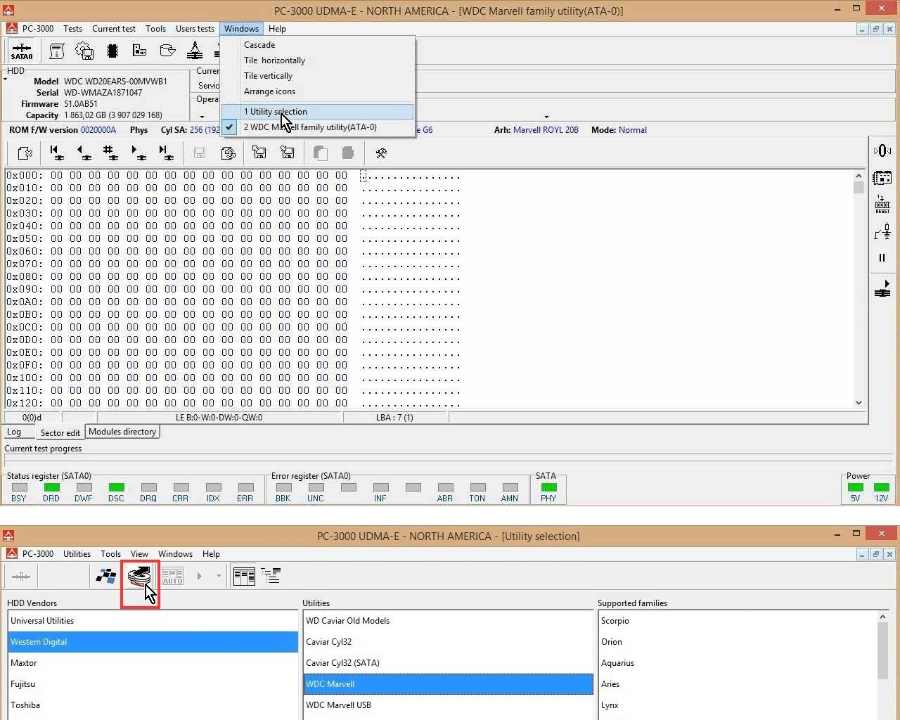 So now we can switch to the Utility Selection window and run Data Extractor. DO NOT CLOSE THE WD UTILITY NOW!!!