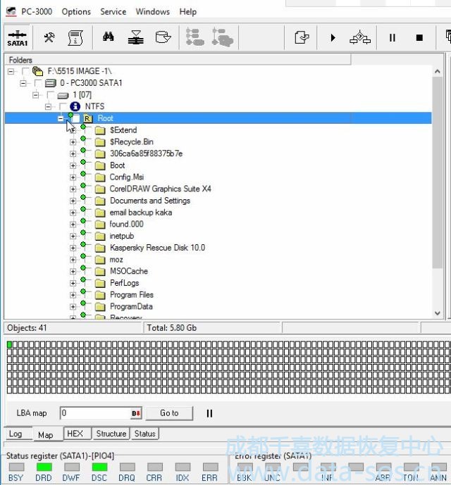 當(dāng)驅(qū)動器進(jìn)入就緒狀態(tài)時,我們可以通過ATA在Data Extractor中創(chuàng)建磁頭位圖: