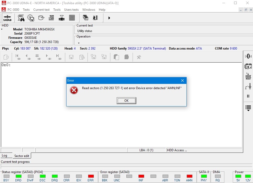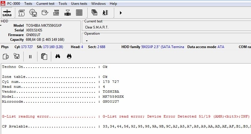 Now we will look at the specific steps of diagnostics of Toshiba drives.