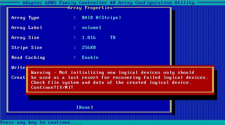 轉載請注明:成都千喜數(shù)據(jù)恢復中心 » Adaptec系列芯片Raid卡配置方法、管理手冊-Raid0配置方法