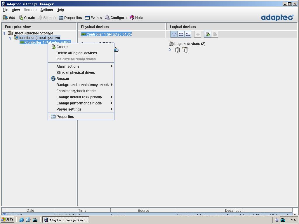 1.adaptec raid卡的管理軟件在windows下安裝后的運(yùn)行界面如下圖