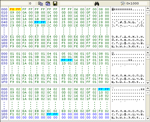There is the special view of the first three sectors of FAT16 table on the picture above.