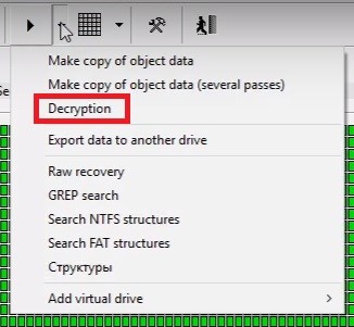 Next we press to?Execute?button and see that?Decryption?menu is grey and not available for using: