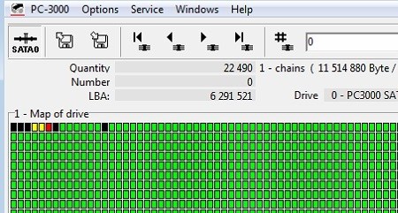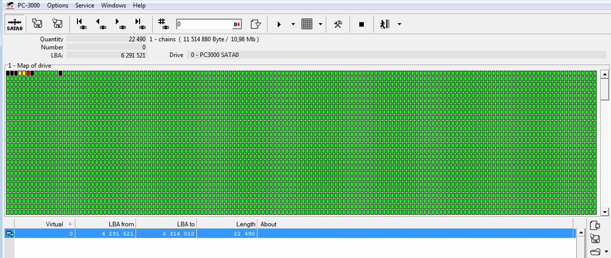 In this particular ?case, we have a drive without any firmware issues – all modules are OK, heads are in good condition, the translator is ok and allows to read the whole User Area. But the surface is heavily damaged by heads. As a result, you won’t be able to expand the partition with files and folders in the Data Extractor: