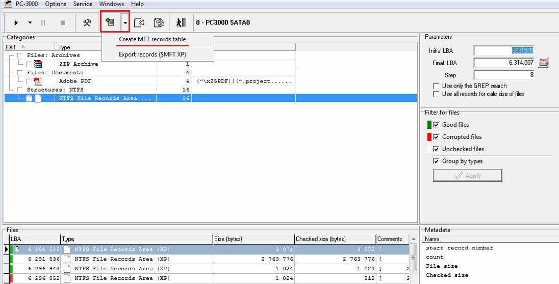 …and open the map of found MFT records:
