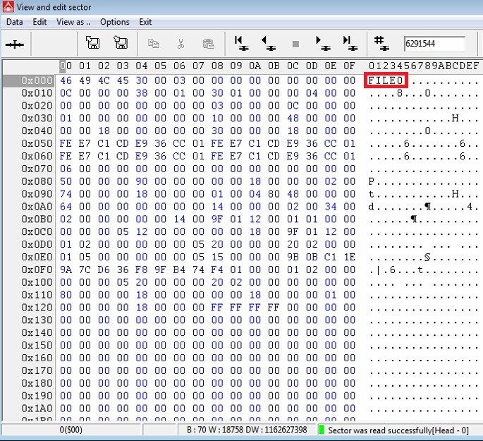 Check the next sectors with a “FILE0” signature: