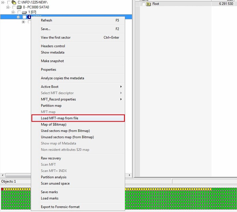 Use the right mouse click on the NTFS partition and load the MFT table from the saved file: