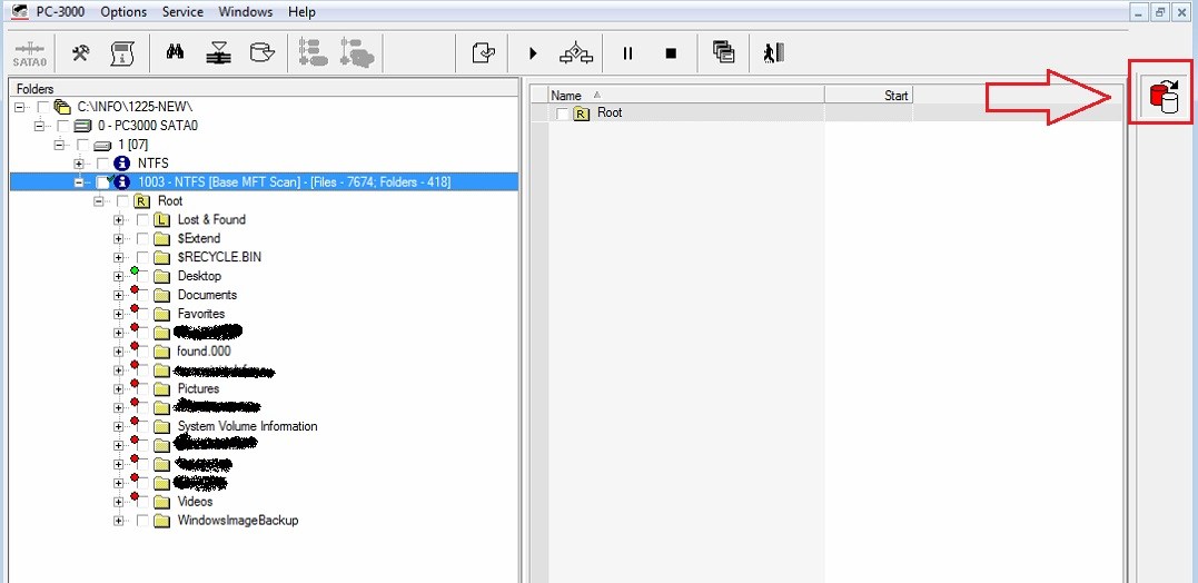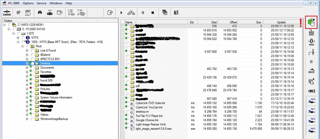 在這種情況下,我們的驅(qū)動器沒有任何固件問題-所有模塊都正常,磁頭狀態(tài)良好,轉(zhuǎn)換器正常,并允許讀取整個用戶區(qū)。但是表面被頭部嚴重損壞。結果,您將無法使用Data Extractor擴展分區(qū)的文件和文件夾: