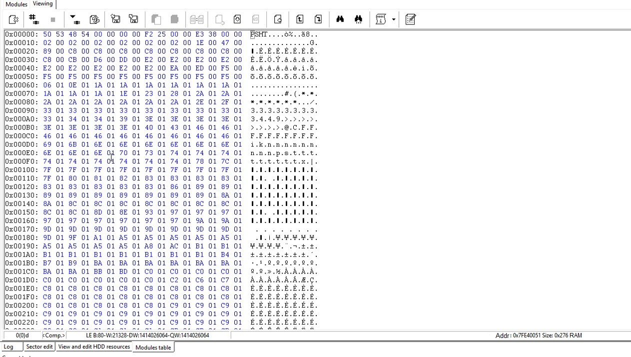 并到RAM / NV-RAM以檢查PSHT是否已加載到RAM中。讓我們以PSHT為例做一下。