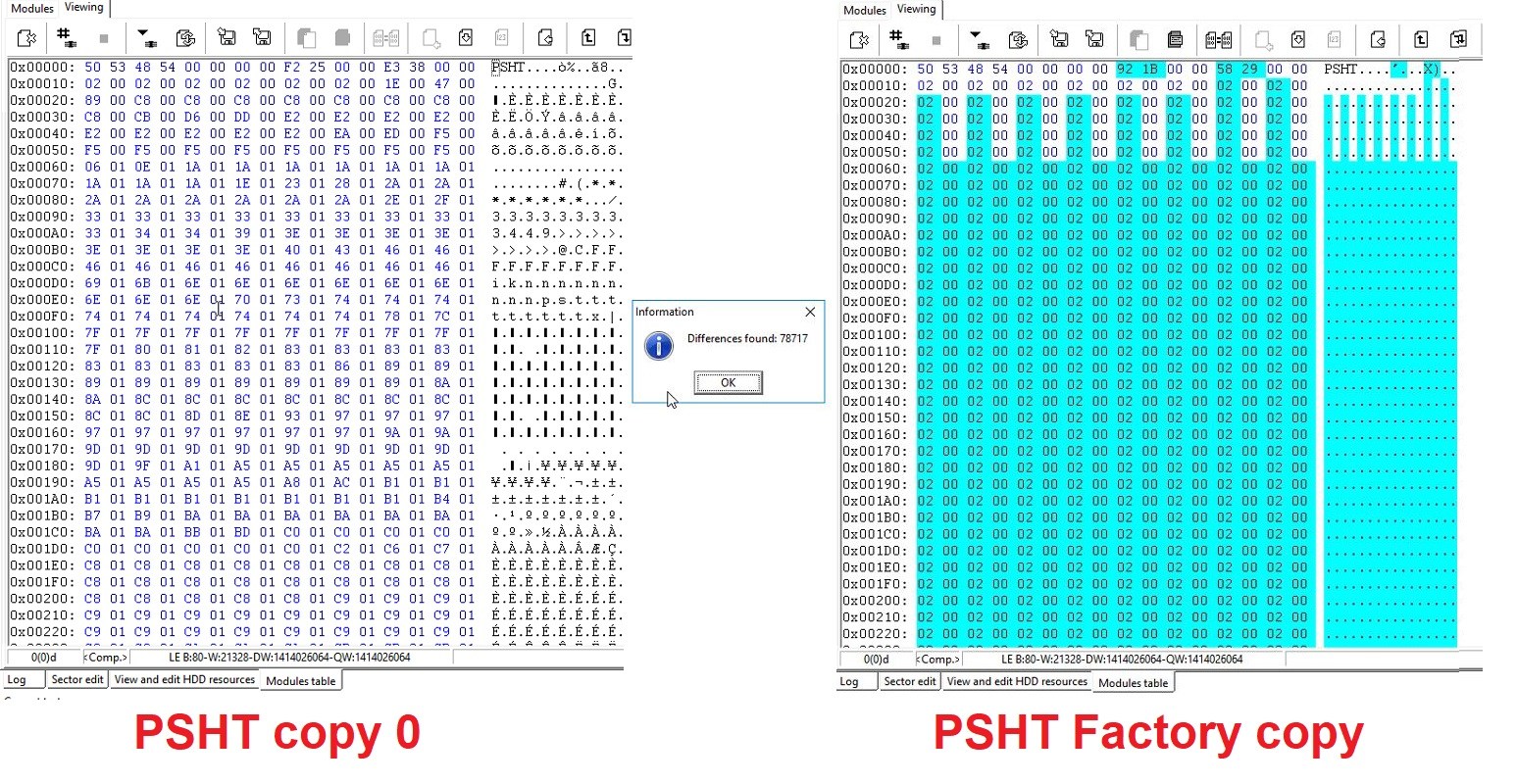 What can we do now? Since we did a full backup, know that heads are healthy and can write in the Service Area, let’s try one trick: write the PSHT factory copy into the copy 0 in the SA.