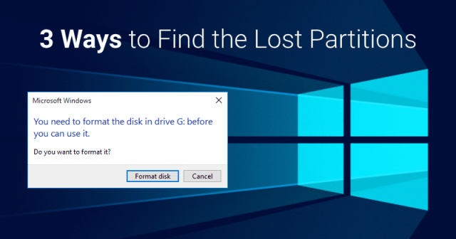 In case of type 1 or type 2 of metadata issues, the OS may stop displaying the partition. In other words we will see the problem of the lost partitions.