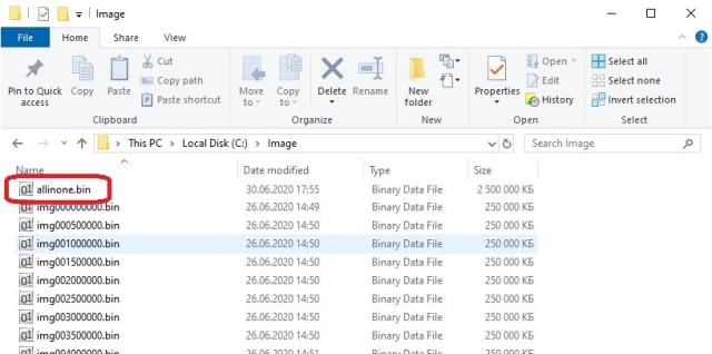 First of all, you need to put all necessary bin files into one folder (it’s better to use the folder created in the Root folder of the Local drive).