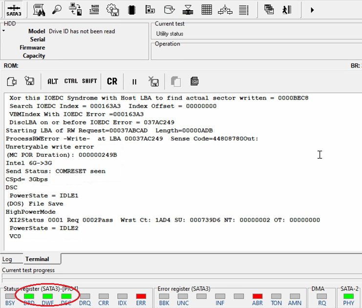 今天我們要討論的是PC-3000軟件新版本6.7所實(shí)現(xiàn)的另一功能。 設(shè)備故障問題的解決方案。 有時(shí),您可以在通電后立即使用它。 有時(shí),您的驅(qū)動(dòng)器可能會(huì)進(jìn)入“就緒”狀態(tài),但是任何操作都會(huì)導(dǎo)致DWF寄存器錯(cuò)誤,并且您的命令將被中止。
