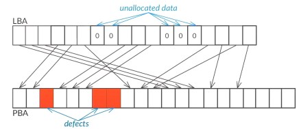 實際上,邏輯訪問(LBA)考慮了扇區(qū)的轉(zhuǎn)換并跳過了缺陷(隱藏在缺陷列表中)。