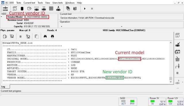 New vendor ID depends on the current HDD capacity. Since our drive is 600Gb, the new vendor ID will be?EGO600FBVFP?after the microcode writing.