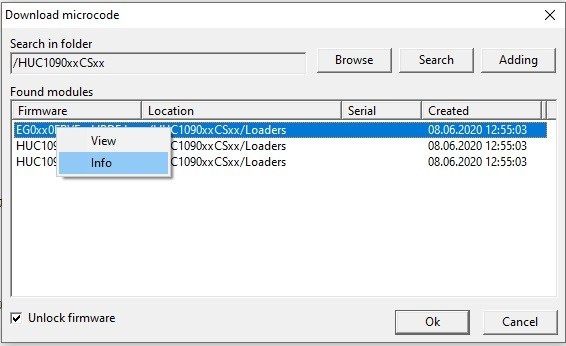 The selected checkbox in the “Unlock firmware” field means that FW will be written in a special mode, which allows FW to load another vendor.