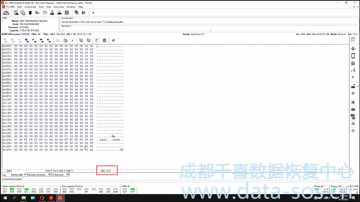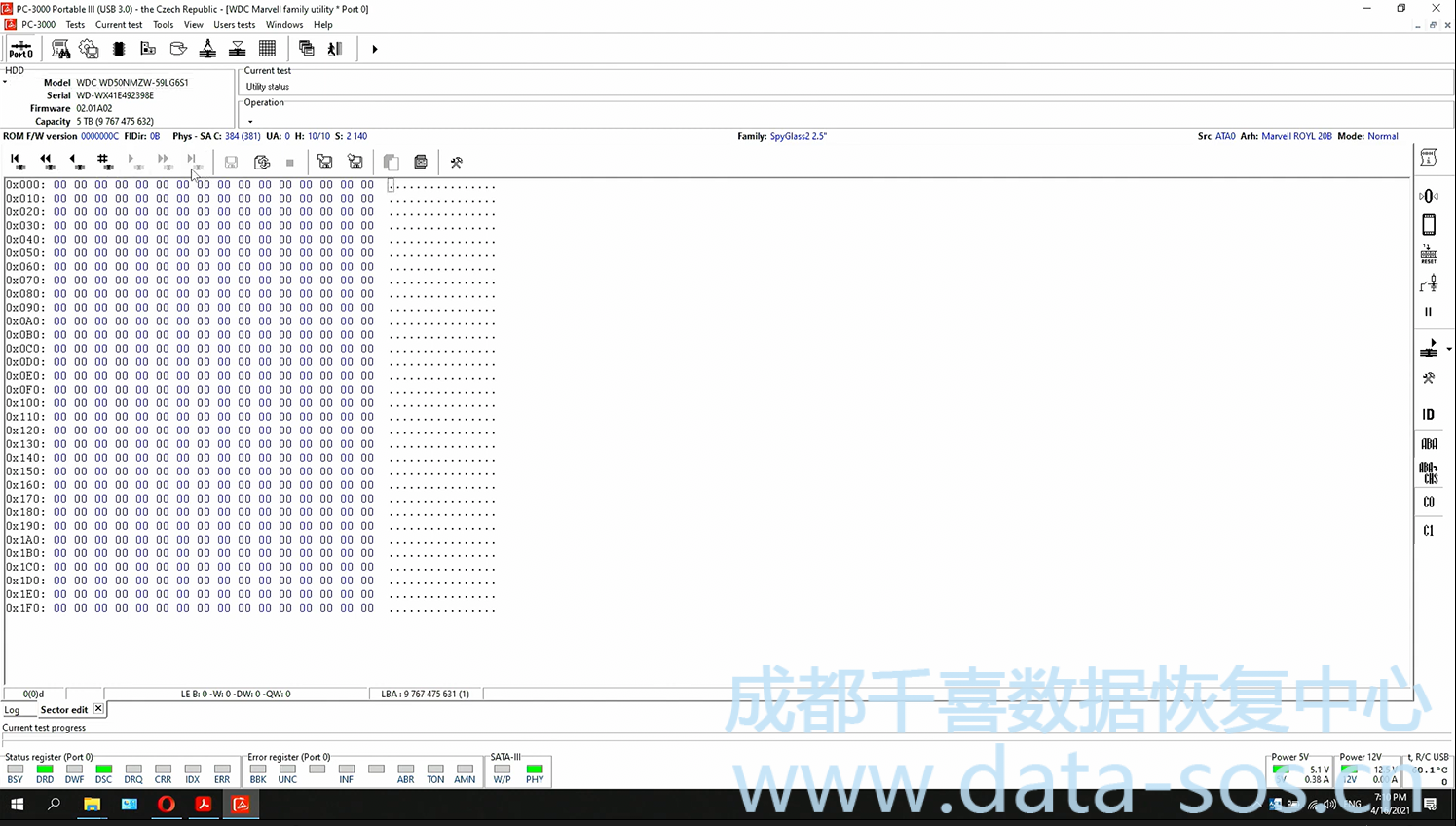 一塊西部數(shù)據(jù) WD50NMZW硬盤嘗試讀取扇區(qū)數(shù)據(jù)全為0;
