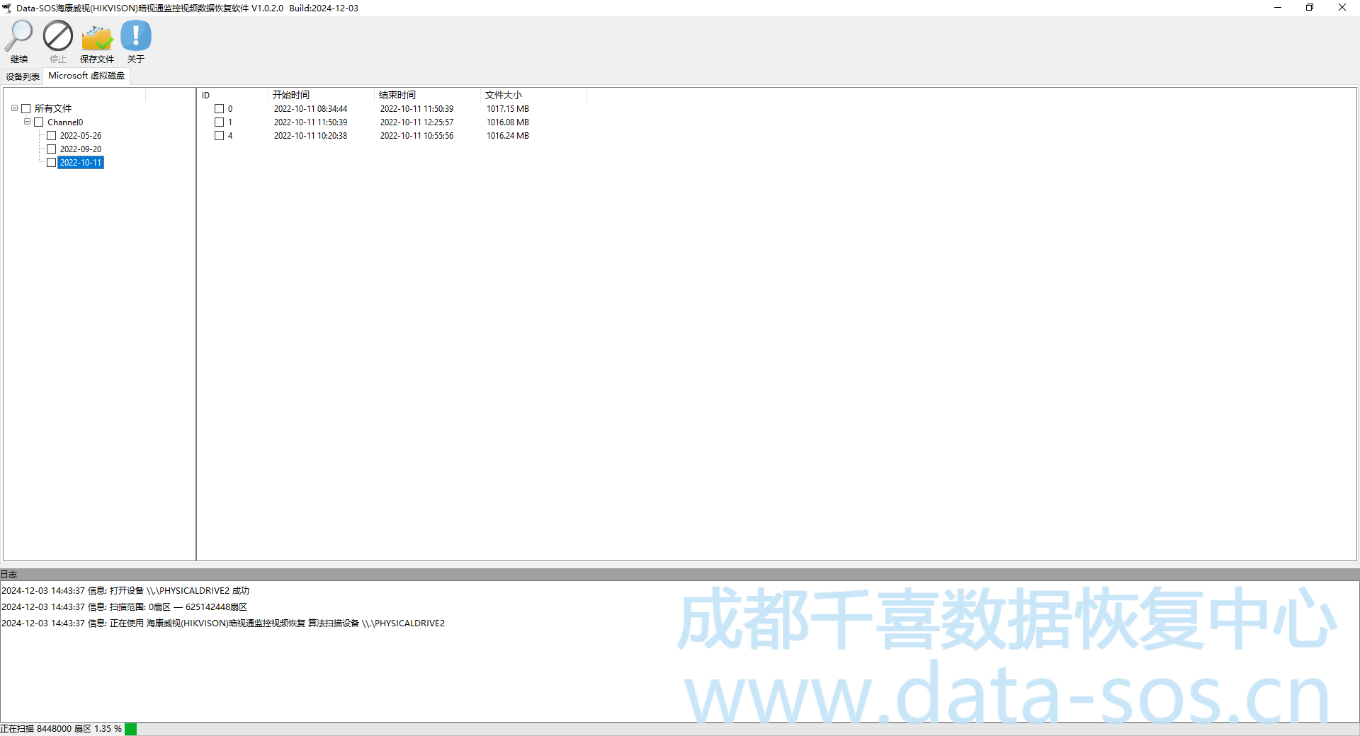 轉(zhuǎn)載請注明:成都千喜數(shù)據(jù)恢復中心 » Data-SOS海康威視(HIKVISON)晧視通監(jiān)控視頻數(shù)據(jù)恢復軟件